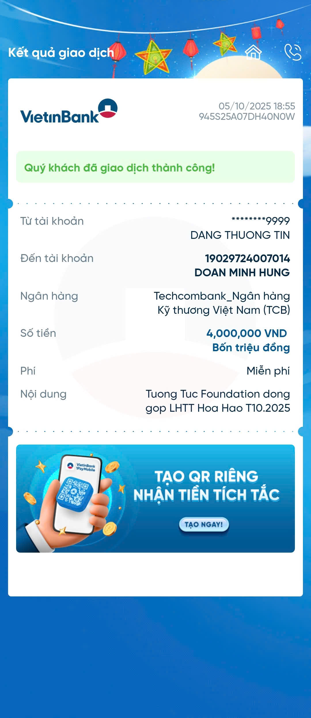 Có duyên tìm hiểu chúng tôi được biết về một lớp học tình thương được chăm lo bởi gia đình người đàn ông xuất thân từ một gia đình nông dân nghèo ở Vũng Tàu, cha mẹ chia tay khi chưa đầy 1 tuổi, lớn lên trong sự đùm bọc của ông bà. Có lẽ đó chính là lý do khiến chú Đoàn Minh Hùng thấm thía hơn ai hết số phận của những đứa trẻ có hoàn cảnh không may mắn quanh mình. Và lớp học tình thương Hòa Hảo đã ra đời từ đó! Chia sẻ với tấm lòng bao la của gia đình chú Hùng dành cho các em nhỏ, Tương Tức Foundation đã đồng hành cùng Lớp học Hoà Hảo từ tháng 7/2014 cho đến nay, chúng tôi tài trợ mỗi tháng một khoản tiền cùng với gia đình chú Hùng và các mạnh thường quân khác để duy trì lớp học.